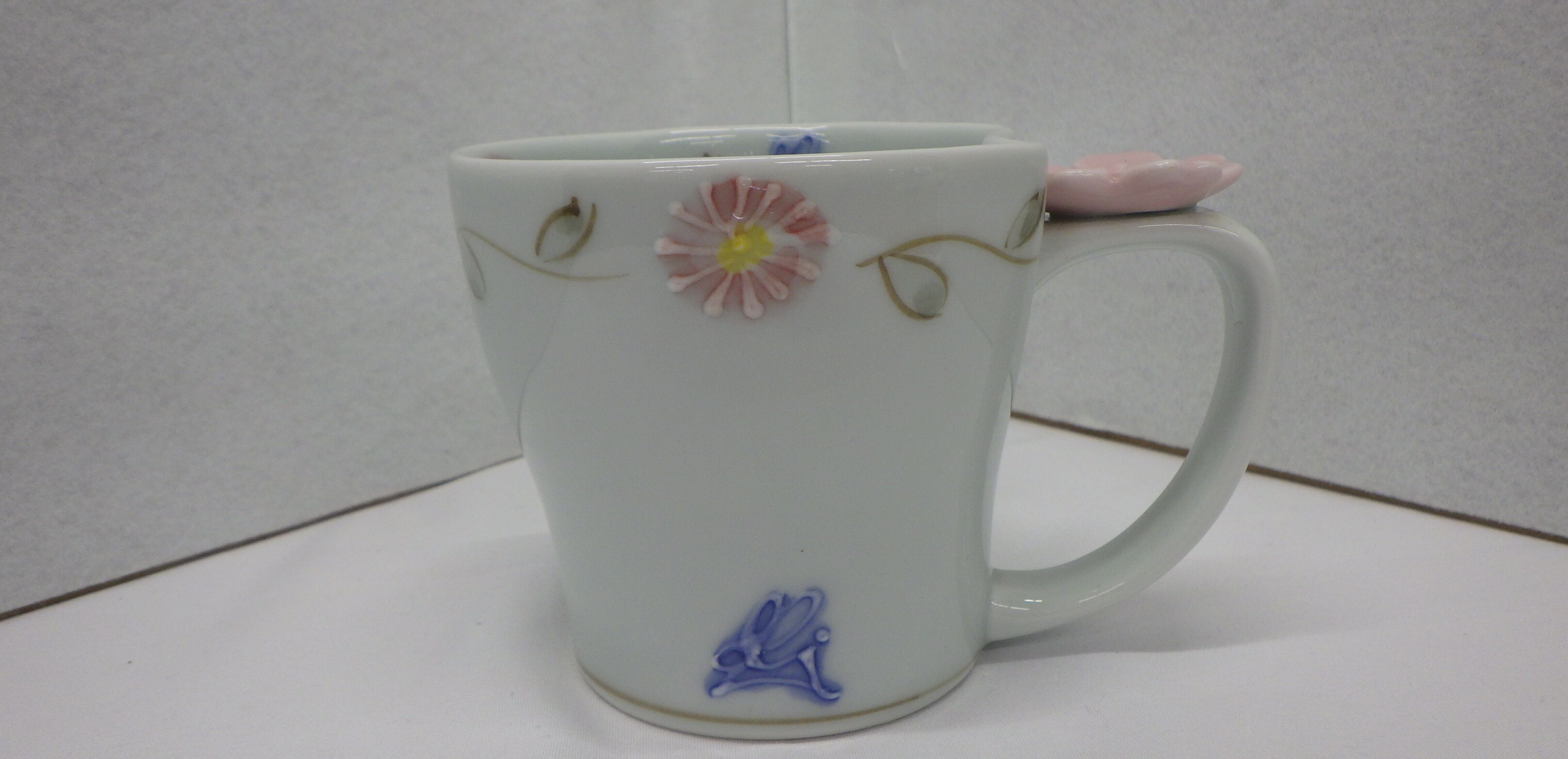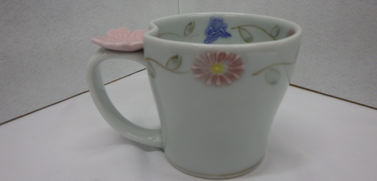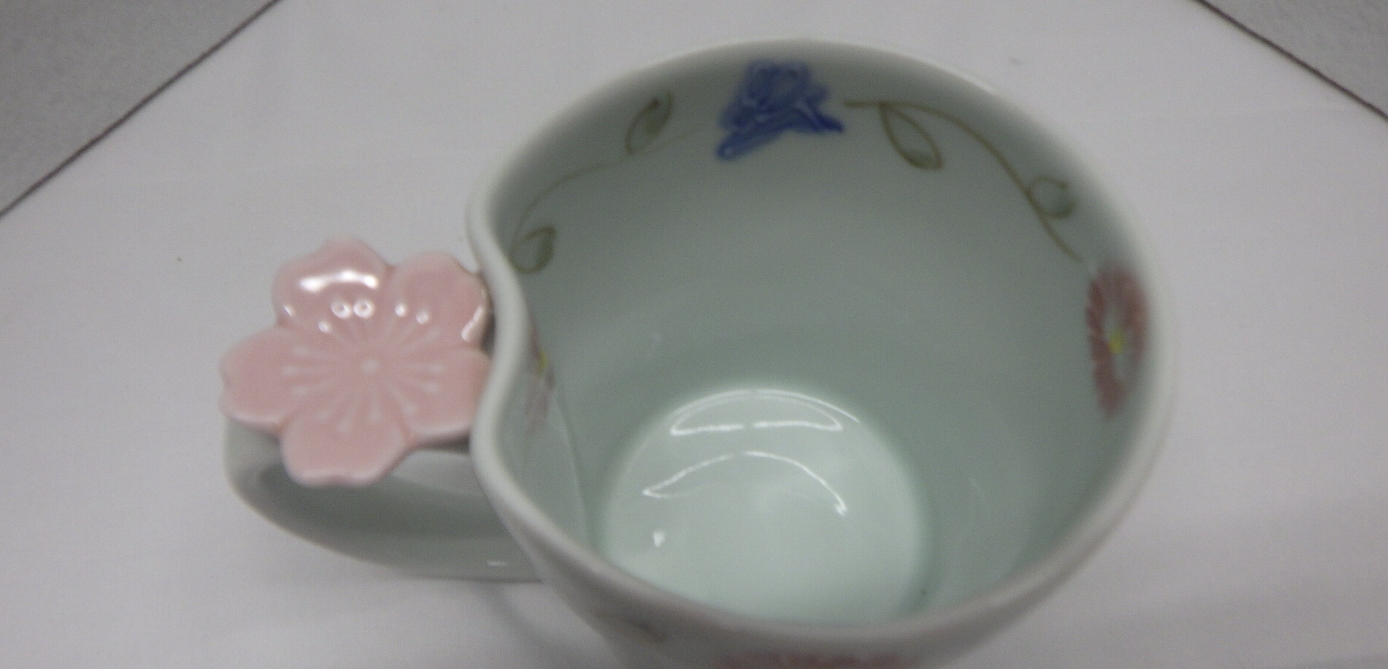 ・他にも取っ手部分の花が紫のデザインのカップをご用意しております。