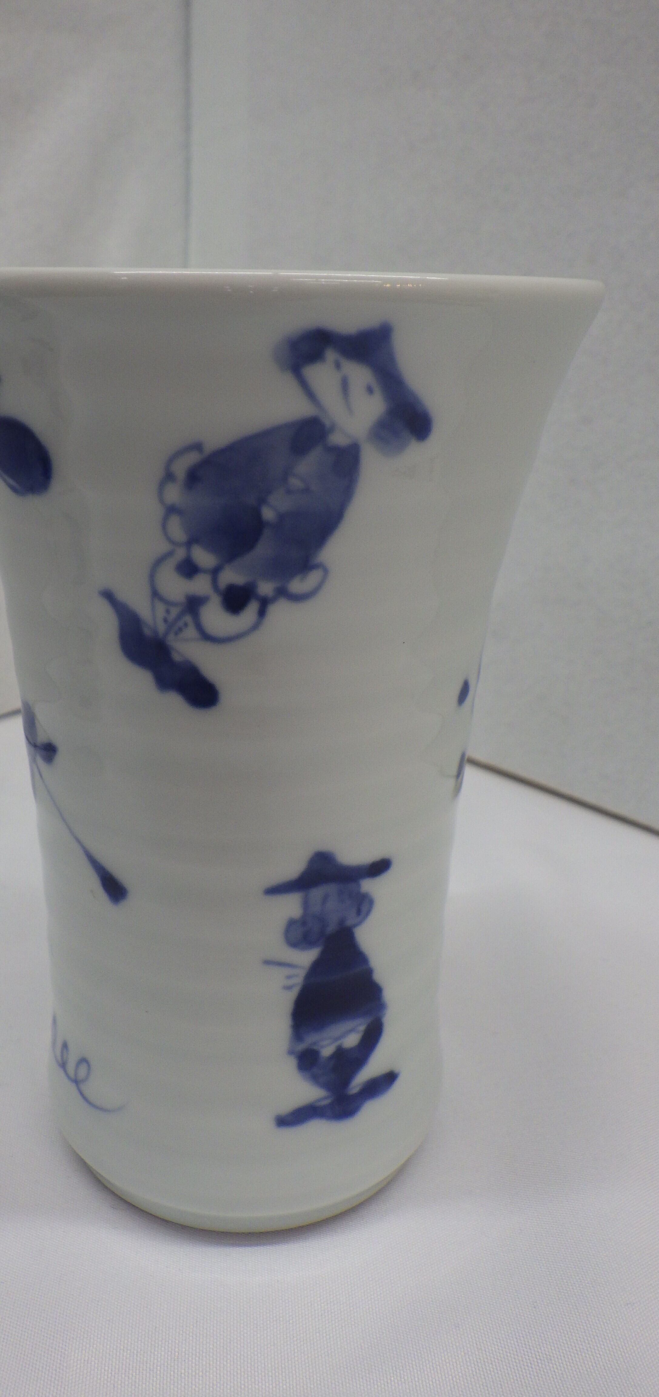 この「青花ビアカップ 異人づくし」は、日本の伝統ある青花の技法を活かした、美しいデザインのビアカップです。磁器でも美味しく頂けるように反り型の飲み口になっています。泡立ちとキレをお楽しみ頂けます。ビールに限らずアイスコーヒーなどにも多様にお使いください。