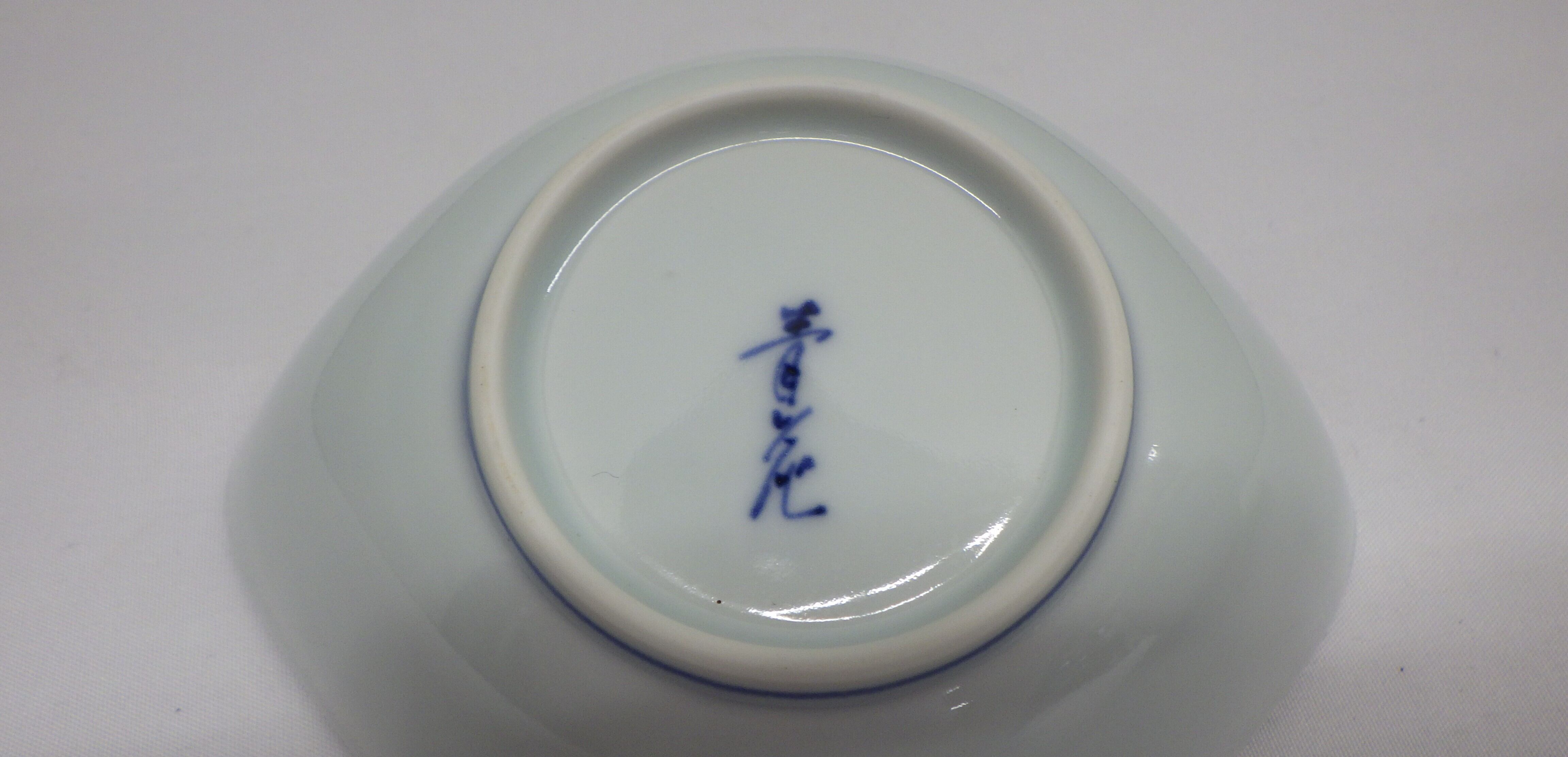 ・カラーは、白地に繊細な青花模様が描かれています。