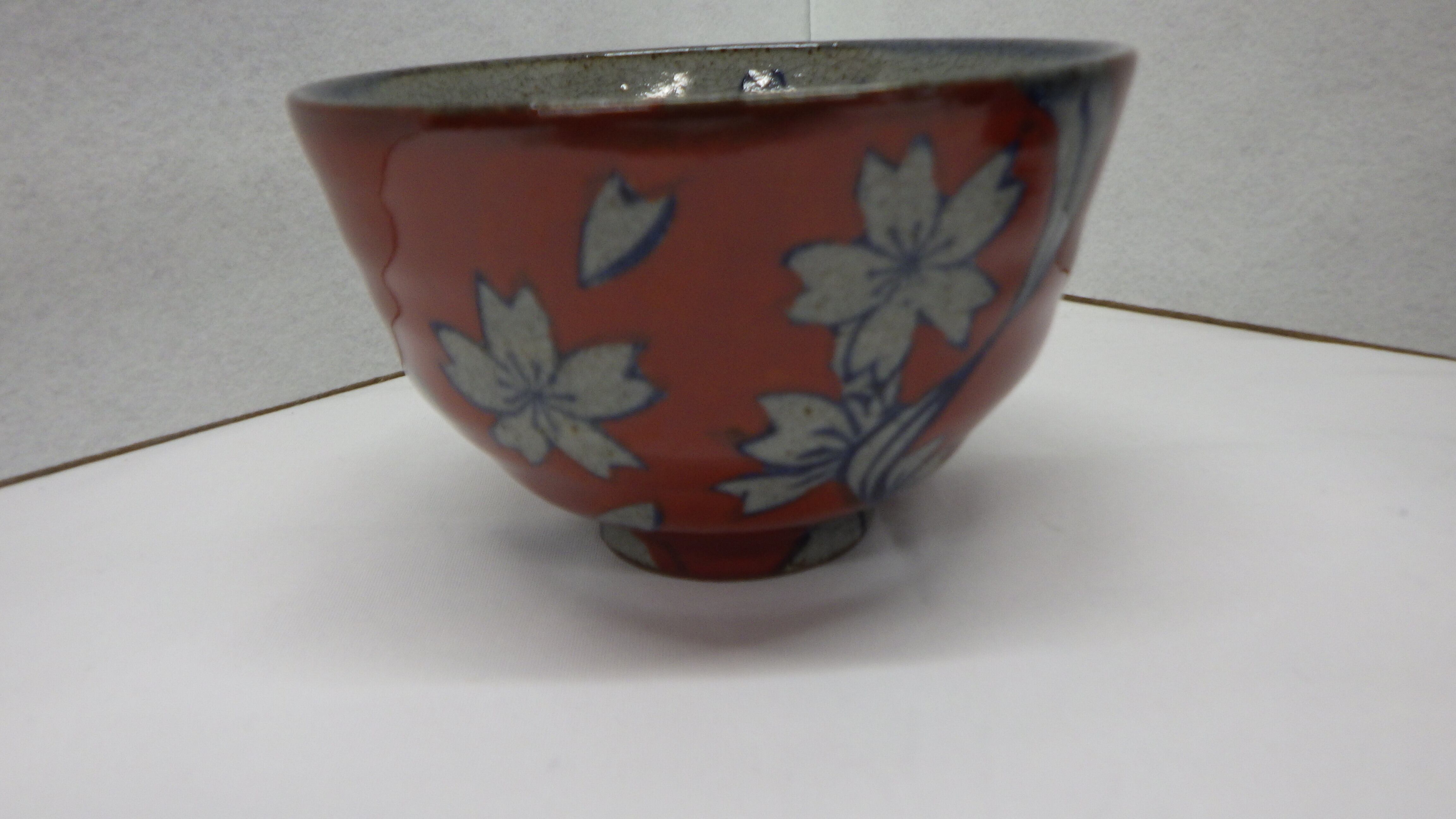 有田焼 お茶碗 桜流水(赤)